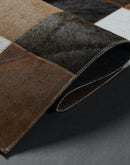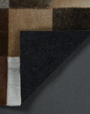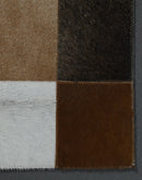 Rahman Area Rugs Cowhide Leather Area Rug, Geometric Block Patchwork Leather Carpet, Luxurious Square Design Living Room Rug, Non Slip Floor Accent for Bedroom, Hallway (Brown Tone, 6x9 ft)