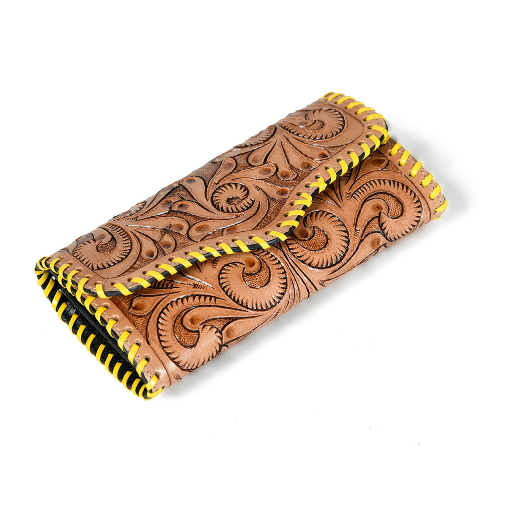 Elevate your style with the "Sunflower Hand Tooling Wallet With Dari" – a blend of tradition, quality, and functionality that stands out in the world of accessories. Experience the beauty of handcrafted luxury every time you reach for your wallet.