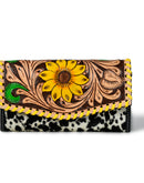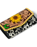 Elevate your style with the "Sunflower Hand Tooling Wallet With Hair" – a blend of tradition, quality, and functionality that stands out in the world of accessories. Experience the beauty of handcrafted luxury every time you reach for your wallet.