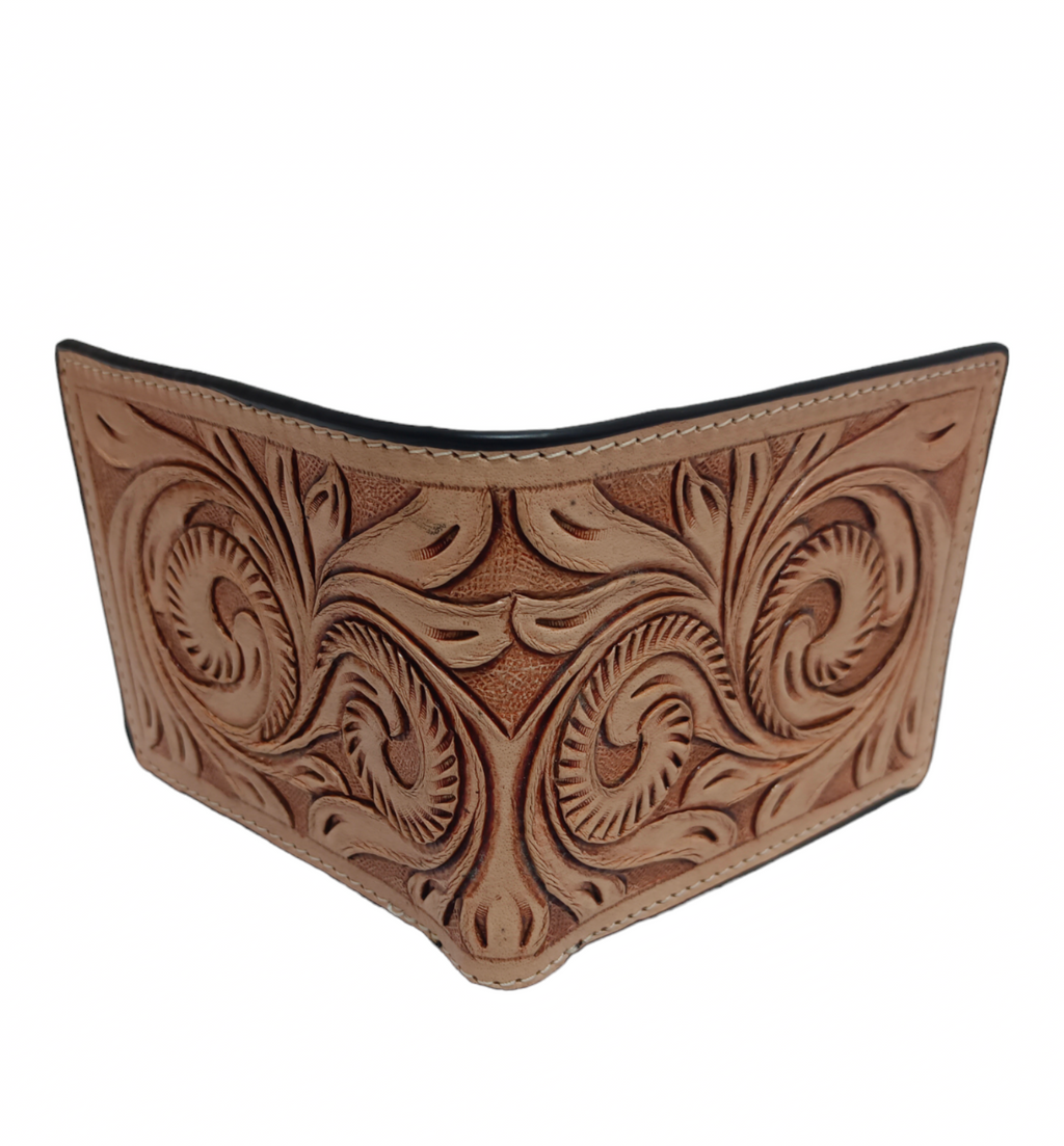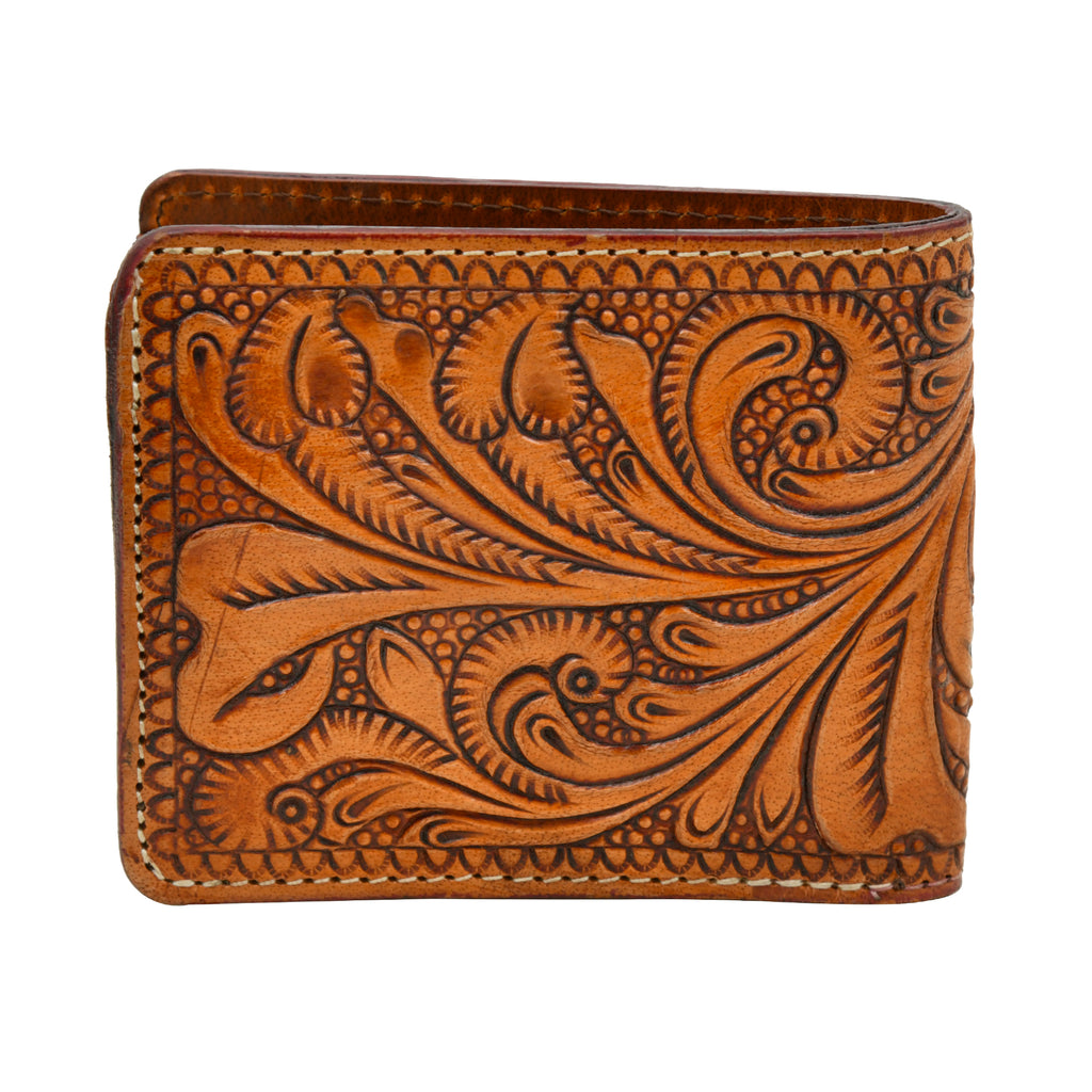 Hand tooled leather wallets are artisan-crafted wallets made using traditional techniques of leather tooling. These wallets are typically made from high-quality leather, such as cowhide or vegetable-tanned leather, ...