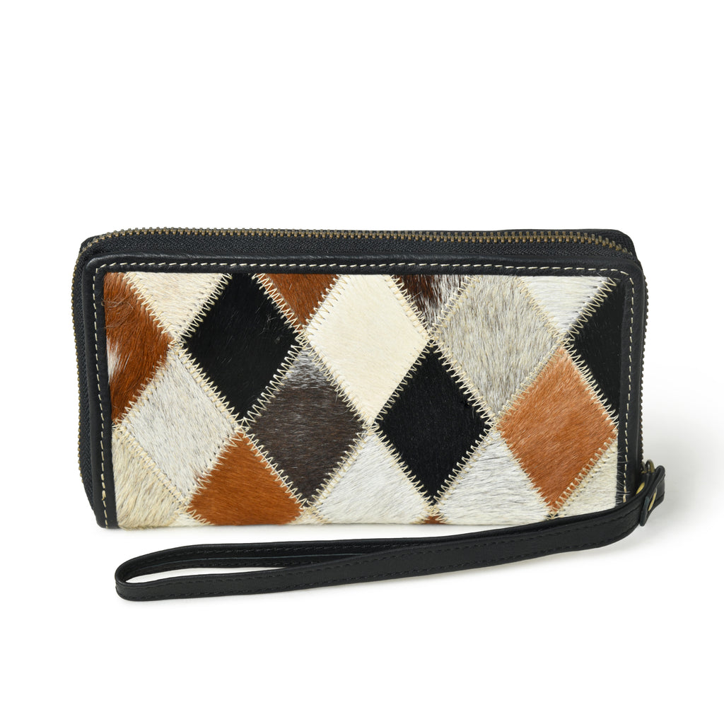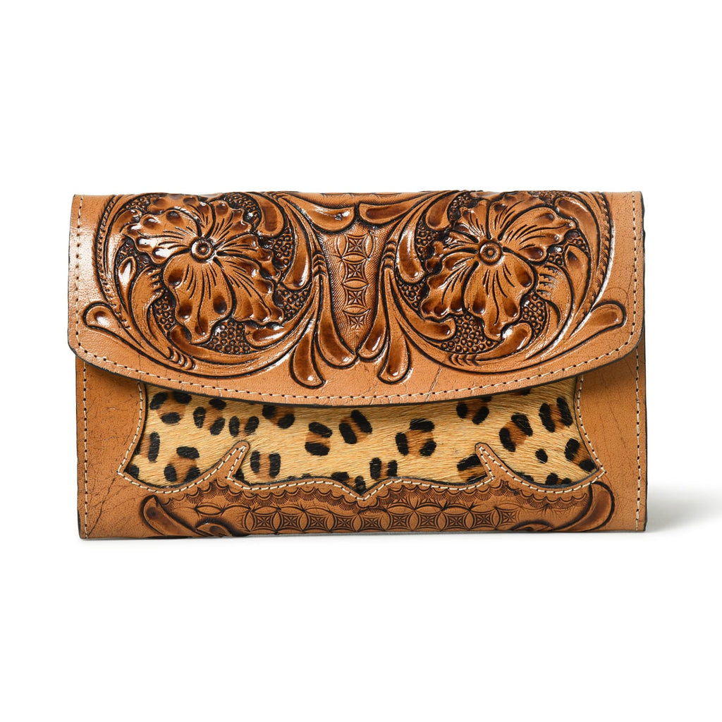 Women Stylish Hand Tooled Carving Clutch Cowhide Leopard Fur Wallet Stylish Clutch