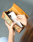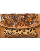 Hand Tooled Carving Wallet Clutch Phone Case Stylish Genuine Leather Leopard Fur Wallet Multi Uses Western Leather Wallets